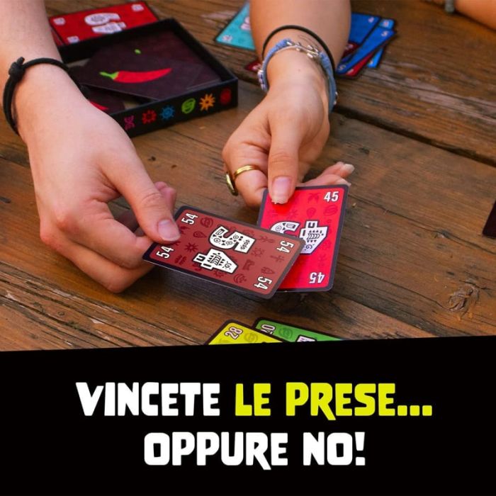 Il gioco utilizza un mazzo di 55 carte numerate da 1 a 55, distribuite in parte ai giocatori. Prima di iniziare, scegliete una carta missione, che aggiungerà del “pepe” – ossia un po’ di peperoncino – al gioco, rendendo ogni partita più piccante e imprevedibile.