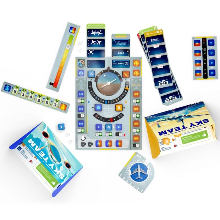 Sky Team è un gioco cooperativo per 2 giocatori, dove la fiducia reciproca è essenziale. La collaborazione e i nervi d'acciaio sono cruciali per superare le sfide. Con un tema forte e un'immersione garantita, il gioco offre una difficoltà progressiva e vari livelli di sfida. La variabilità è arricchita da moduli speciali che aggiungono elementi come vento e ghiaccio alla cabina di pilotaggio. La tensione tra i giocatori è palpabile, rendendo ogni partita unica. Progettato con l'aiuto di veri piloti, Sky Team offre un'esperienza di gioco immersiva e realistica. Acquista Sky Team e vivi l'emozione del volo!